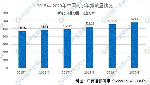 Data show that China’s annual sewage discharge has increased from 46.662 billion cubic meters in 2015 to 55.465 billion cubic meters in 2019, with an average annual compound growth rate of 4.41%. China’s sewage discharge is increasing year by year. It is estimated that China’s sewage discharge will reach 579.1 in 2020. One hundred million cubic meters.