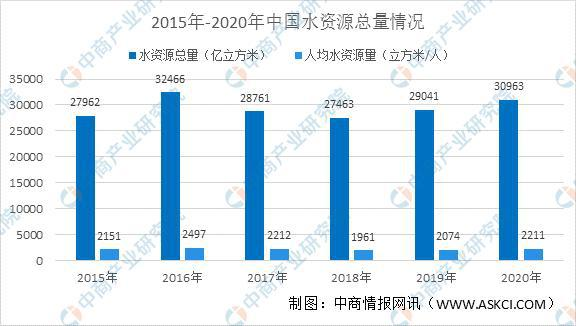 The total amount of water resources in China is relatively high. Data shows that the total amount of water resources in China has increased from 2,796.2 billion cubic meters in 2015 to 3,096.3 billion cubic meters in 2020. Due to the large population of China, the amount of water resources per capita is relatively small. In 2020, the amount of water resources per capita in my country will reach 2,211 cubic meters. In the arid regions of northwest China, the amount of water resources per capita is even smaller. In recent years, the amount of industrial water and domestic water has been continuously increasing, but water resources are very limited, and the task of purification and treatment of sewage is very important. The sewage must be allocated and optimized for recycling.