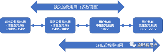 就过去的项目总结来看,多数的微电网项目是以园区公共配电网为主,配置源网荷储形成的,也有部分用户私有的微电网系统,主要是10kV及以上的系统居多。但是分散式智能电网系统,我们认为有两点可能和过去的狭义微电网有差异: