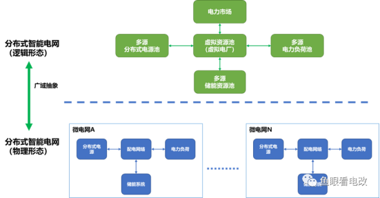 这个Energy,可以是分布式电力,也可以是柔性负荷,汇聚起来就是VPP的形态。因此,分布式智能电网的逻辑内涵,是把分散在电力网络各个地方的小微资源,以信息流的方式汇聚起来,形成逻辑资源池,以虚拟电厂的高阶形态,参与到大电网的运行中,并在电力市场中获得相应回报。