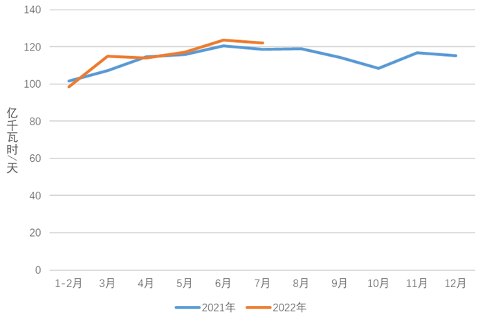分产业看①,1-7月,第一产业用电量634亿千瓦时,同比增长11.1%;第二产业用电量32552亿千瓦时,同比增长1.1%;第三产业用电量8531亿千瓦时,同比增长4.6%;城乡居民生活用电量7586亿千瓦时,同比增长12.5%。